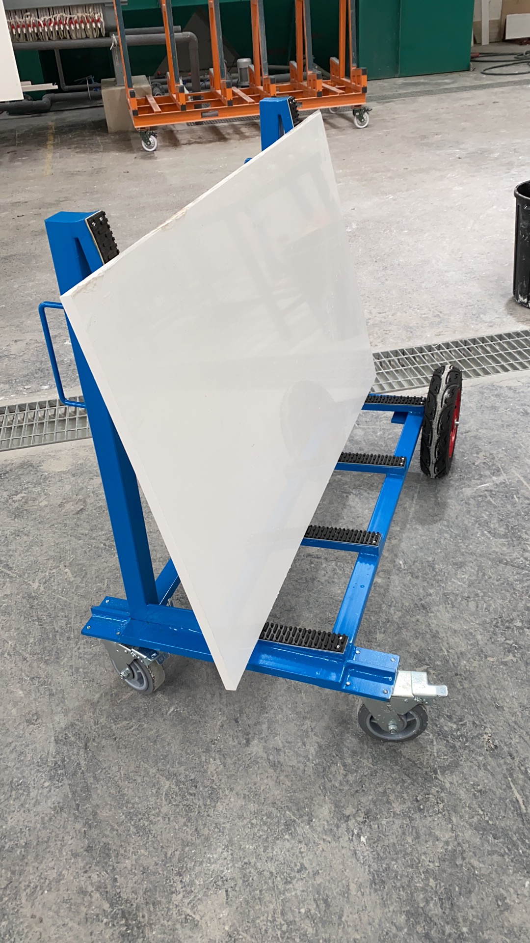 此設(shè)計用于廠區(qū)內(nèi)外的板材運輸和儲存,支架表面覆蓋一層橡膠層,保護板材免于刮傷。
